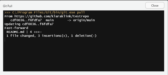 If you see something like this, you can just close the window. The problem is, if you get some error message that the pull was not successful, but hopefully you don’t.