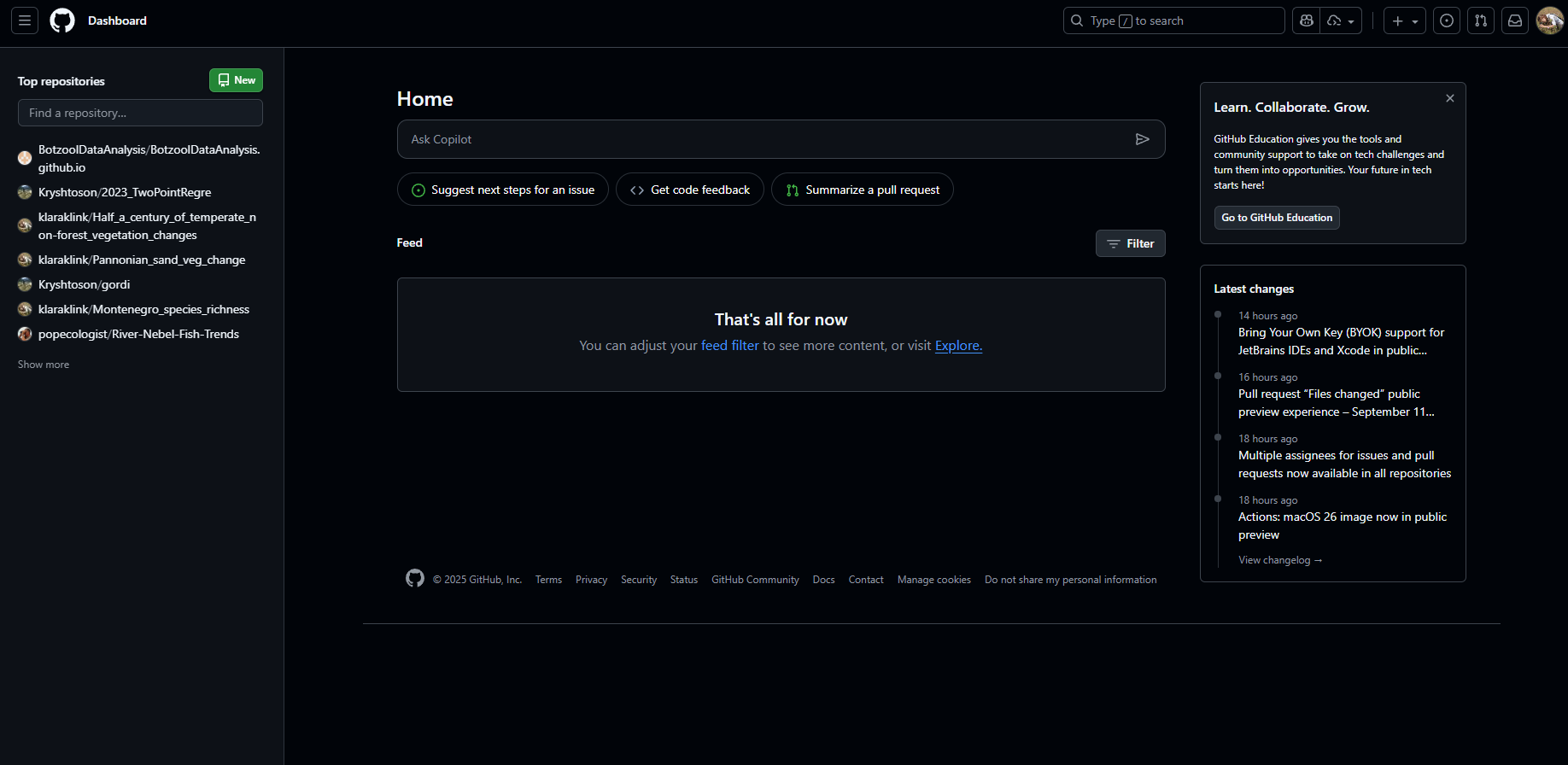 - It is also possible to create and host a webpage like this one through GitHub. Some researchers create their personal webpage this way. To do that you will have to learn basics of Quarto, but don’t be afraid, it is not so difficult. We recommend looking here for some introduction to Quarto and here to explore more about GitHub pages.