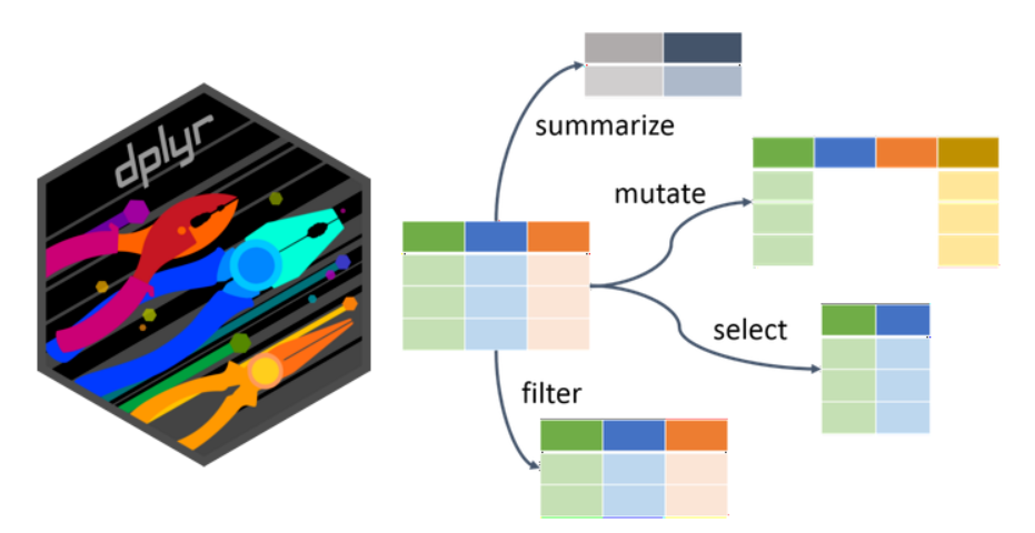 The term data manipulation might sound a bit tricky. However, it does not mean we plan to show you how to cheat and make better results. It just means we want to show you how to easily handle the data, prepare them in the form you need. The functions for basic data handling, namely select, filter, mutate, arrange, slice come from the tidyverse package called dplyr